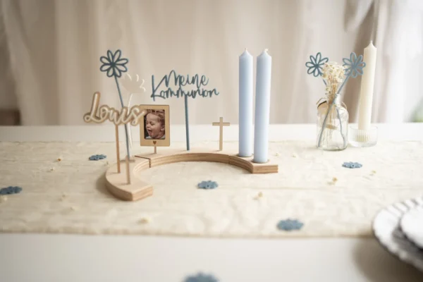 Mit unserer Dekoration zur Kommunion schaffst du eine festliche Atmosphäre mit persönlicher Note. Jedes Produkt ist ein Unikat – so wie der Anlass selbst.