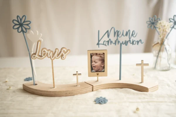 Ob personalisiertes Kommunionskreuz, Dekoteller für die Kommunionskerze oder Caketopper mit Namen – jedes Stück wird mit Sorgfalt in unserer Werkstatt in Rheinland-Pfalz gefertigt. Nachhaltige Materialien wie Holz und Acryl treffen hier auf kreative Ideen und echte Handarbeit.