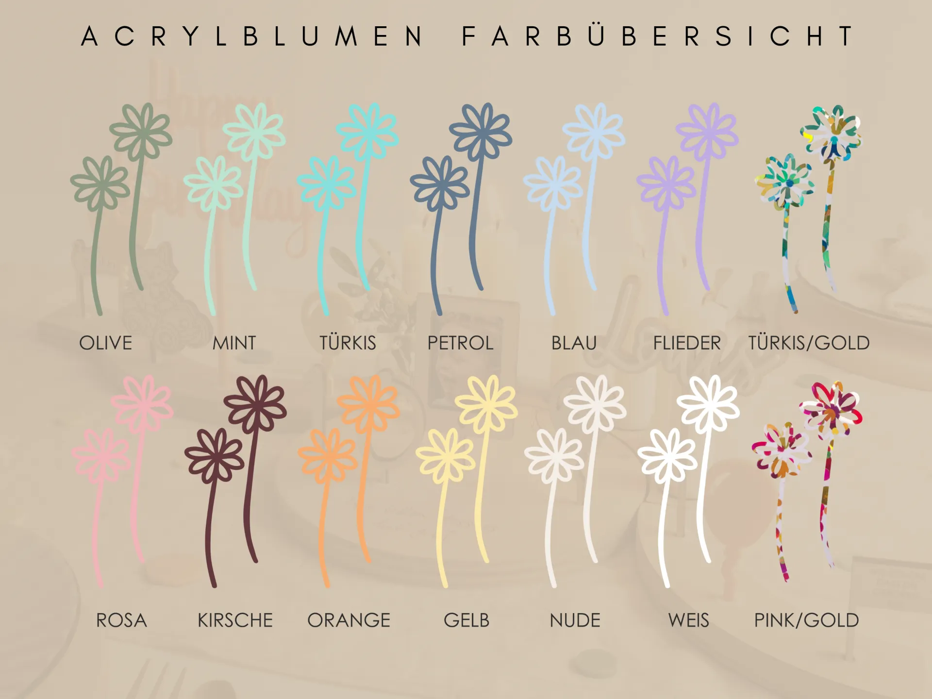 Jede Familie ist anders, jede Deko auch. Deshalb gibt es unsere Acrylblumen in 13 verschiedenen Acrylfarben. Du kannst mehrere Sets bestellen und die Farben frei kombinieren – passend zur Jahreszeit, zum Geburtstagsthema oder einfach zu eurem Zuhause.