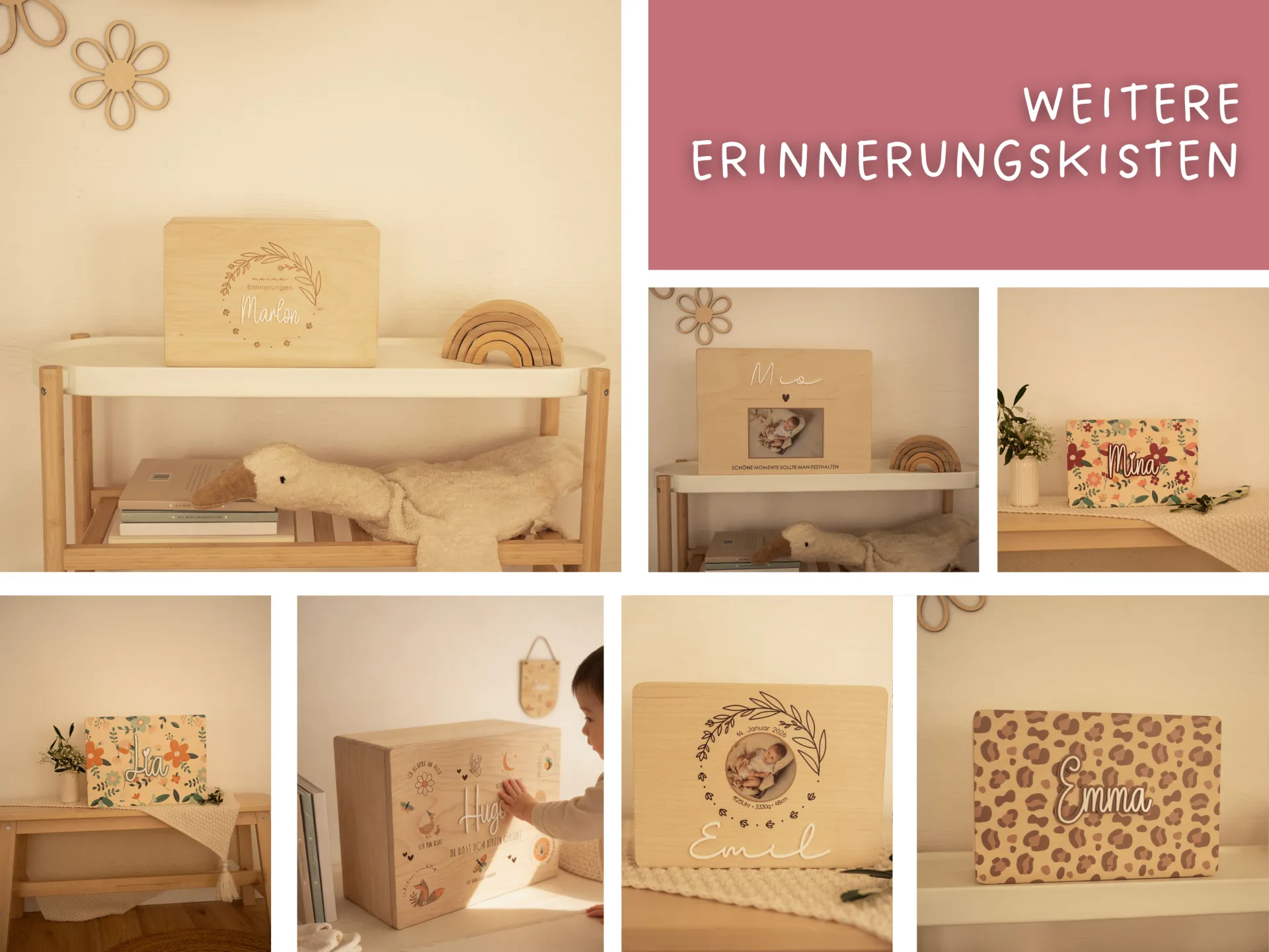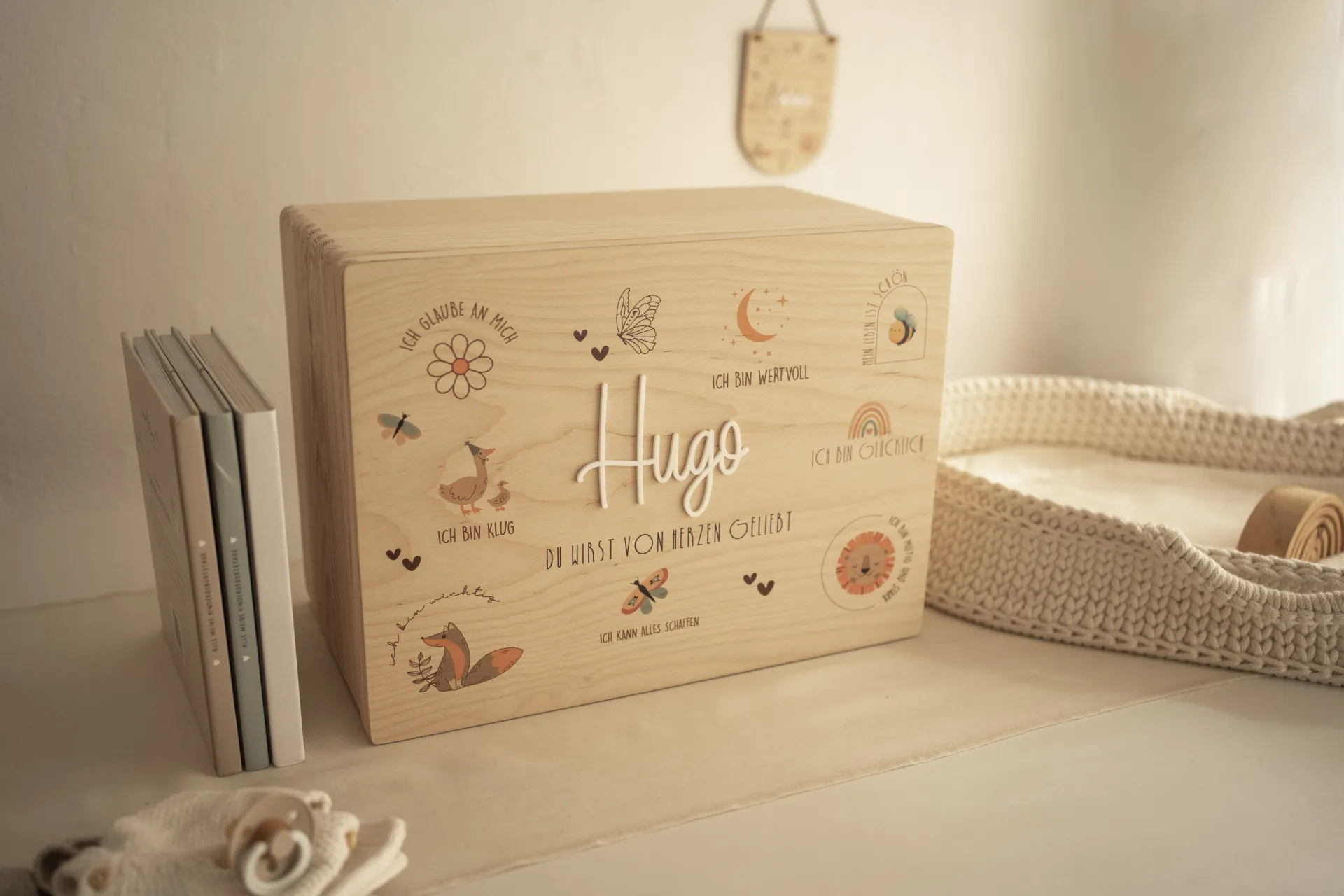 Neben dieser Erinnerungskiste mit Namen und Boho Stil findest du in unserem Shop noch viele weitere Varianten unserer personalisierten Erinnerungskiste aus Holz. Besonders beliebt sind zum Beispiel: