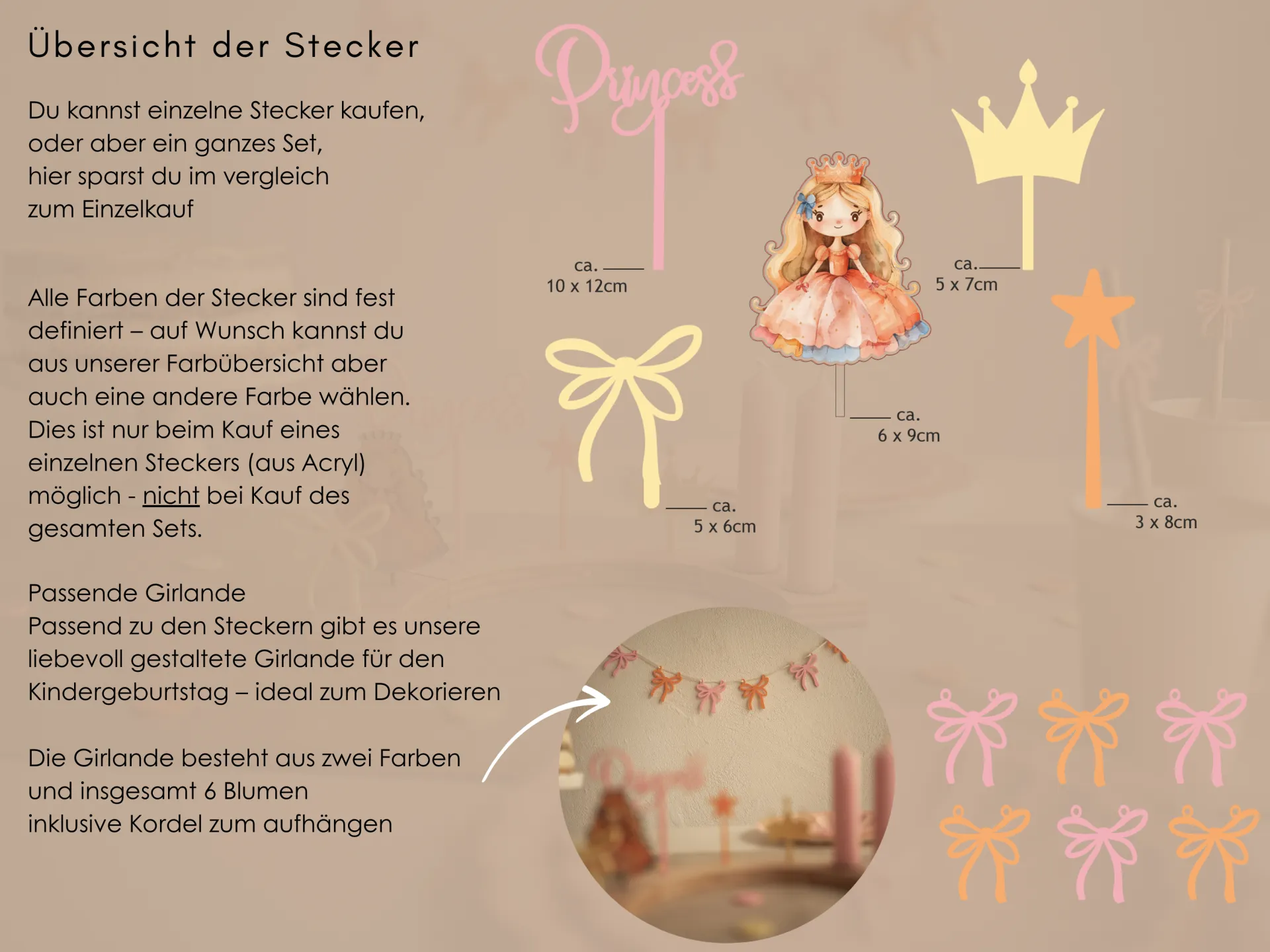Unsere Stecker für Prinzessin Deko sind ideal mit allen Herz & Löwe Geburtstagskränzen kombinierbar. So kannst du jedes Jahr neu dekorieren – passend zur Entwicklung und den Interessen deines Kindes.