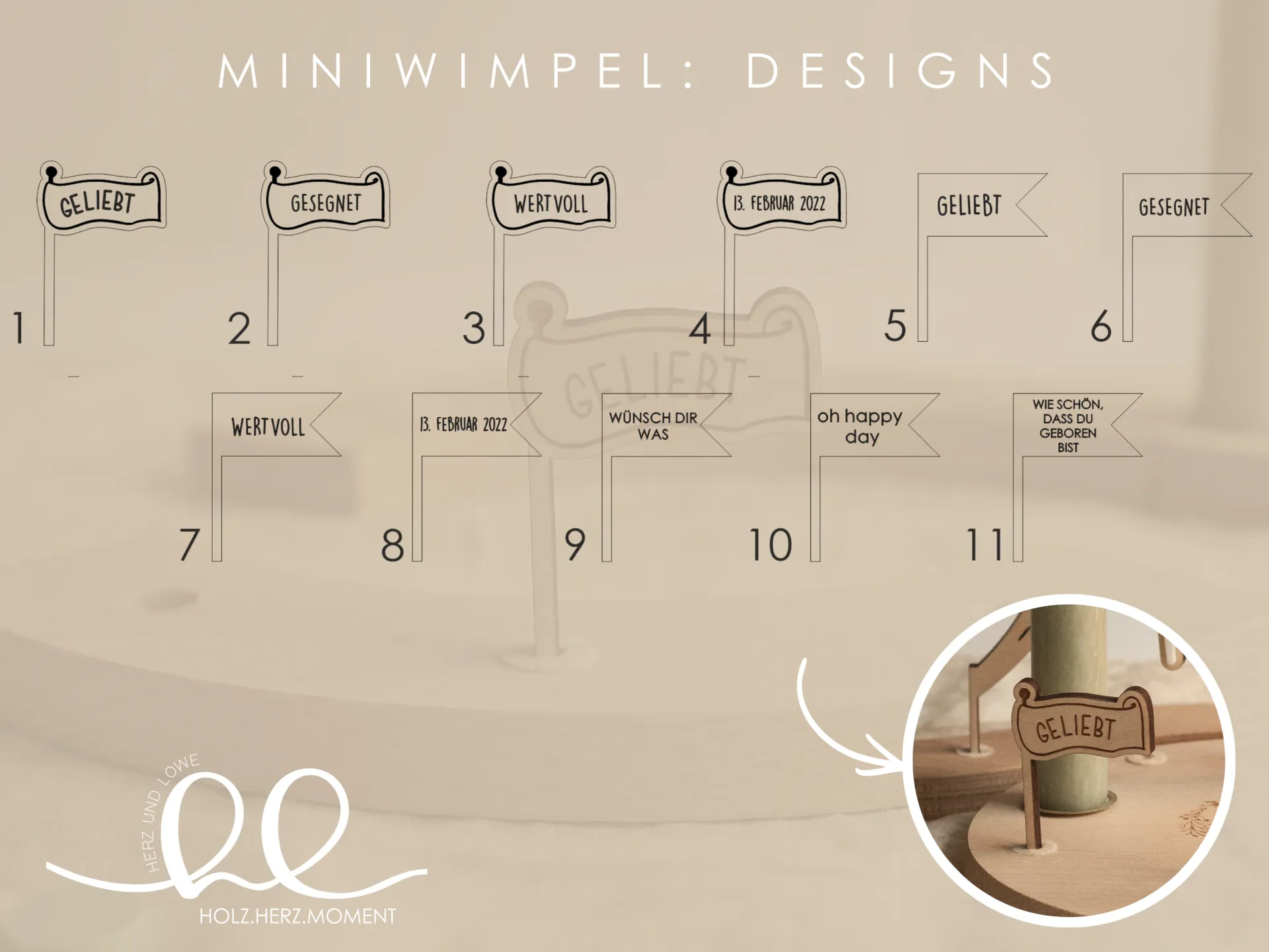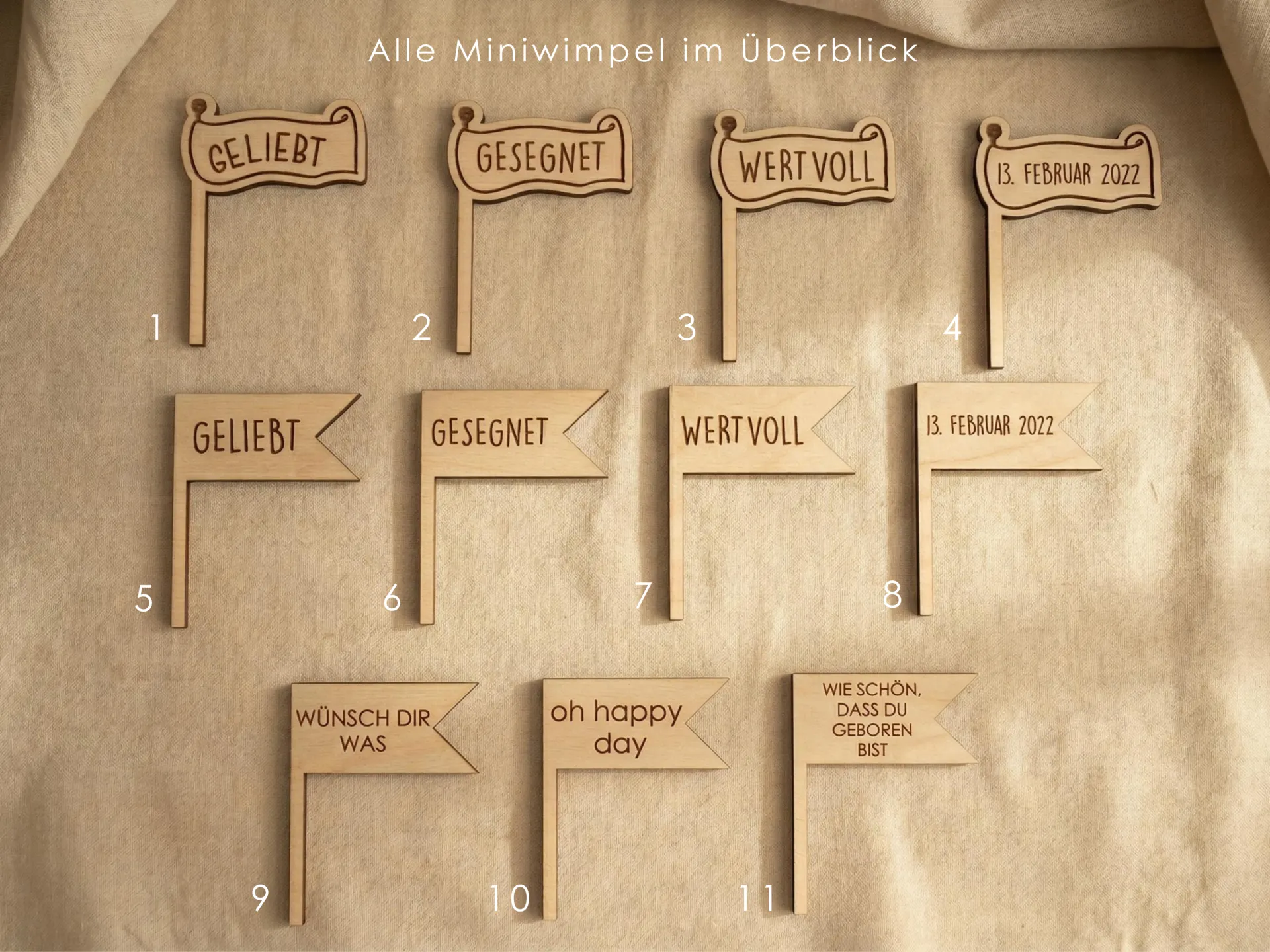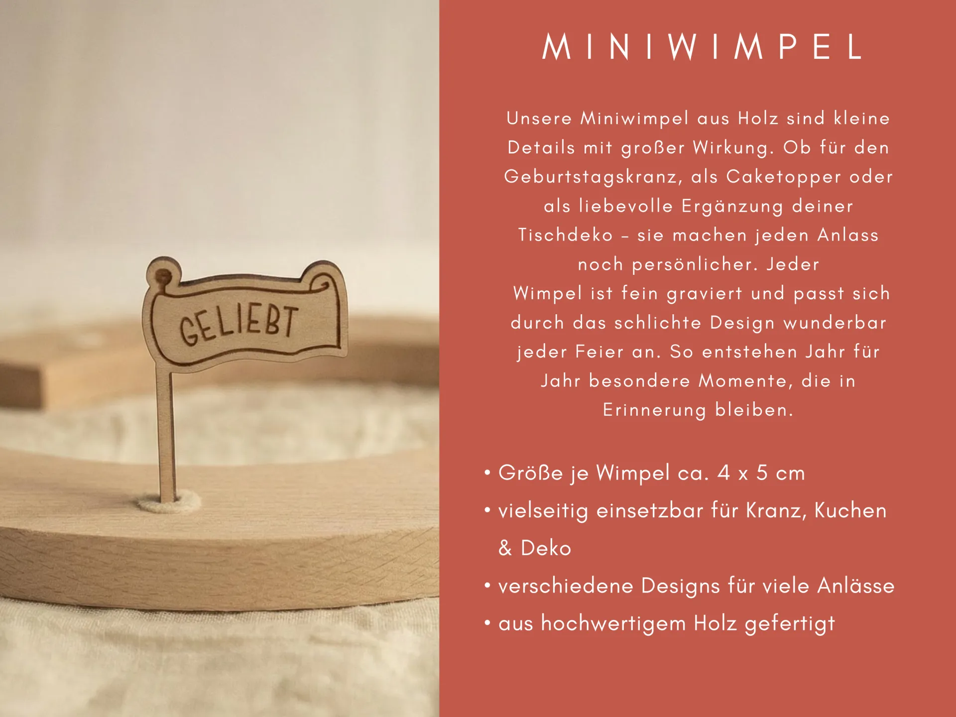 • Miniwimpel aus Holz in 11 Designs