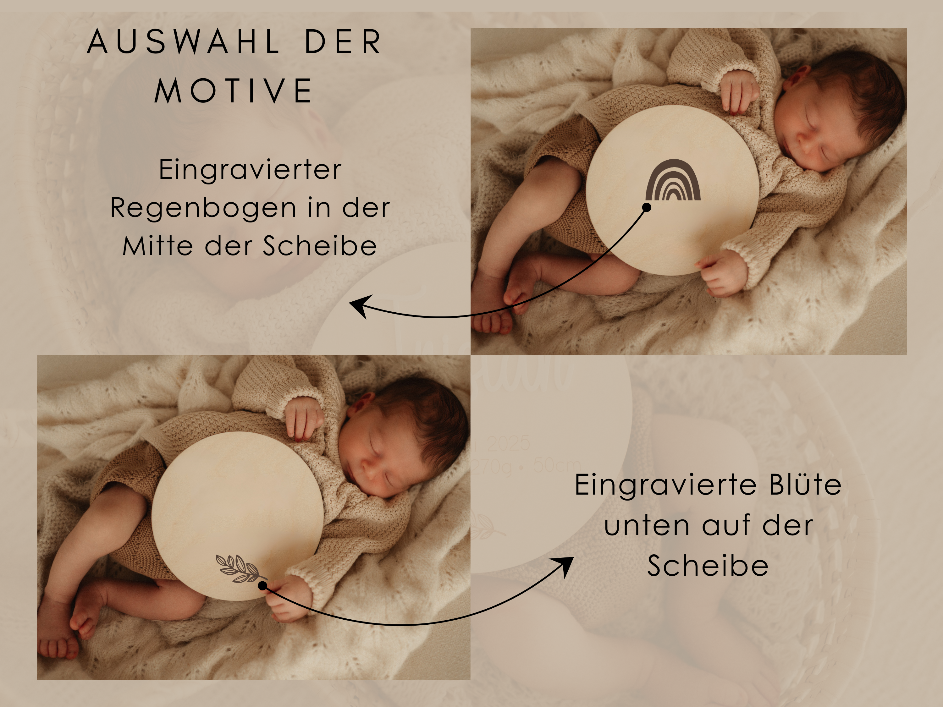 Du bist auf der Suche nach einem ganz individuellen Geschenk zur Geburt oder möchtest das Kinderzimmer deines kleinen Wunders mit einer wunderschönen Dekoration aufwerten? Entdecke jetzt unsere traumhafte, personalisierte Geburtsscheibe aus Holz und gestalte dein eigenes Erinnerungsstück. Unsere Geburtsscheibe aus hochwertigem Birkensperrholz in 5mm Stärke ist nicht nur langlebig, sondern auch wunderschön anzusehen. Du kannst sie in drei verschiedenen Größen - 12, 14 und 16 cm im Durchmesser - erwerben und somit perfekt an deine Bedürfnisse anpassen.