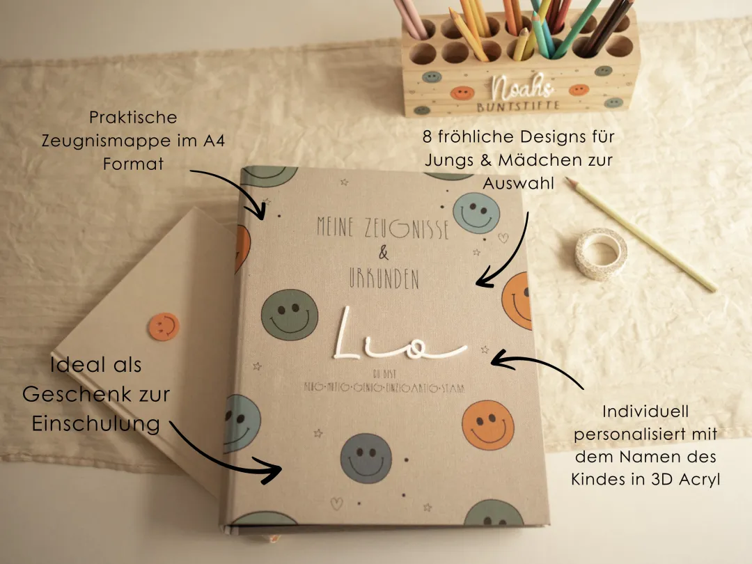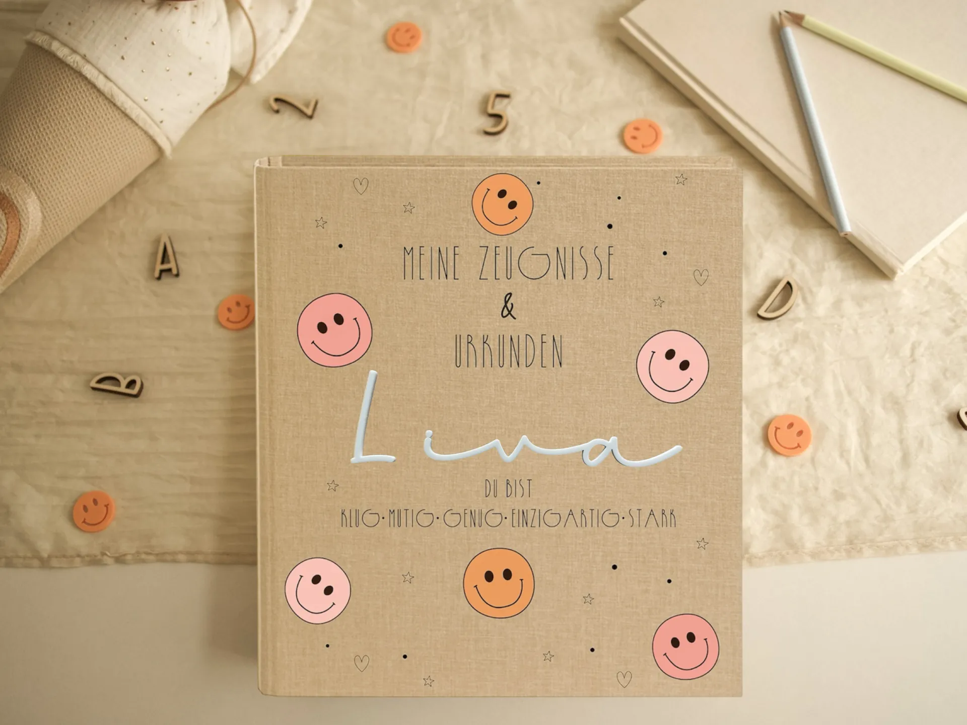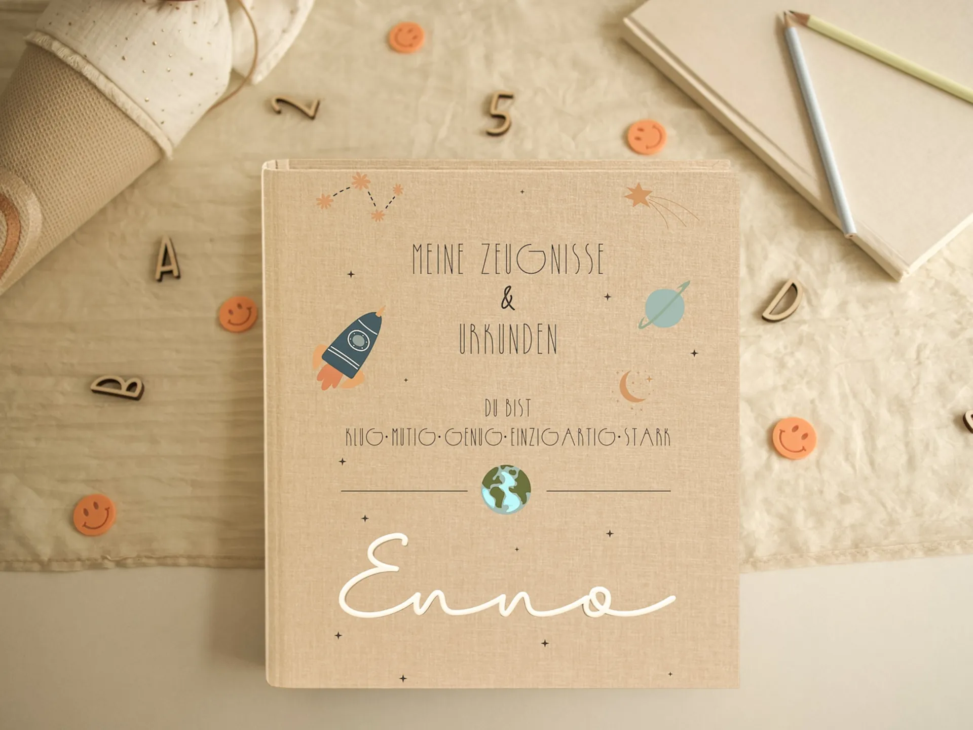 Mit dieser personalisierten Zeugnismappe schenkst du nicht nur einen Ordner – sondern einen sicheren, persönlichen Ort für all die kleinen und großen Erfolge deines Kindes. Ob im Bücherregal oder auf dem Schreibtisch: Diese bunte Zeugnismappe macht Erinnerungen sichtbar – und zeigt, was zählt.