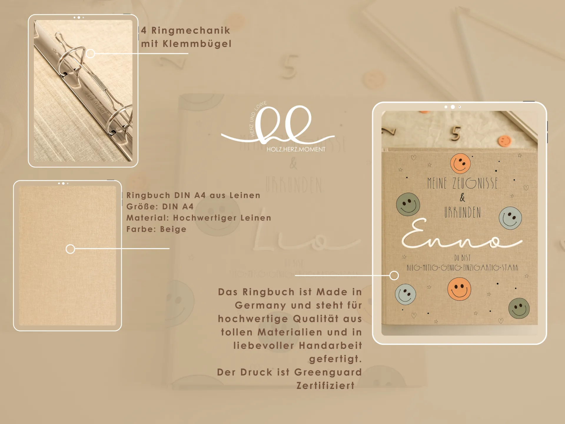 Stabil, nachhaltig & durchdacht: Personalisierte Zeugnismappe mit buntem Design Der Ordner besteht aus Leinen– umweltfreundlich und dennoch robust.