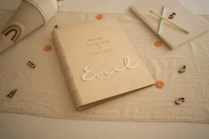 Unter der Gravur wird der Name deines Kindes entweder als edler 3D-Acrylschriftzug oder klassisch eingraviert umgesetzt. Dadurch entsteht eine moderne, hochwertige Optik, die sofort ins Auge fällt. Unsere Zeugnismappe personalisiert passt perfekt zu jedem Stil – schlicht, zeitlos und mit ganz viel Bedeutung.