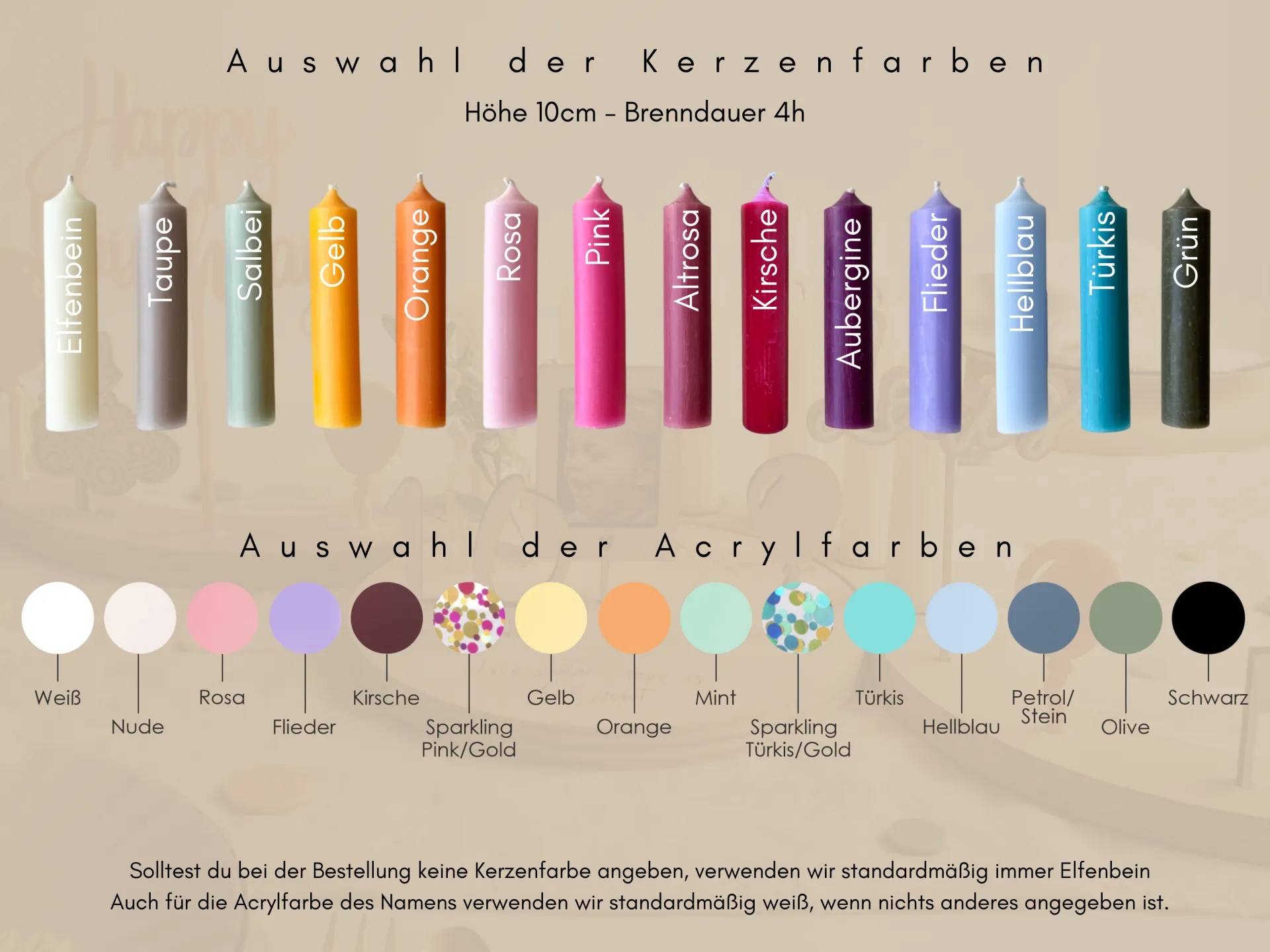 • 14 Kerzenfarben zur Auswahl