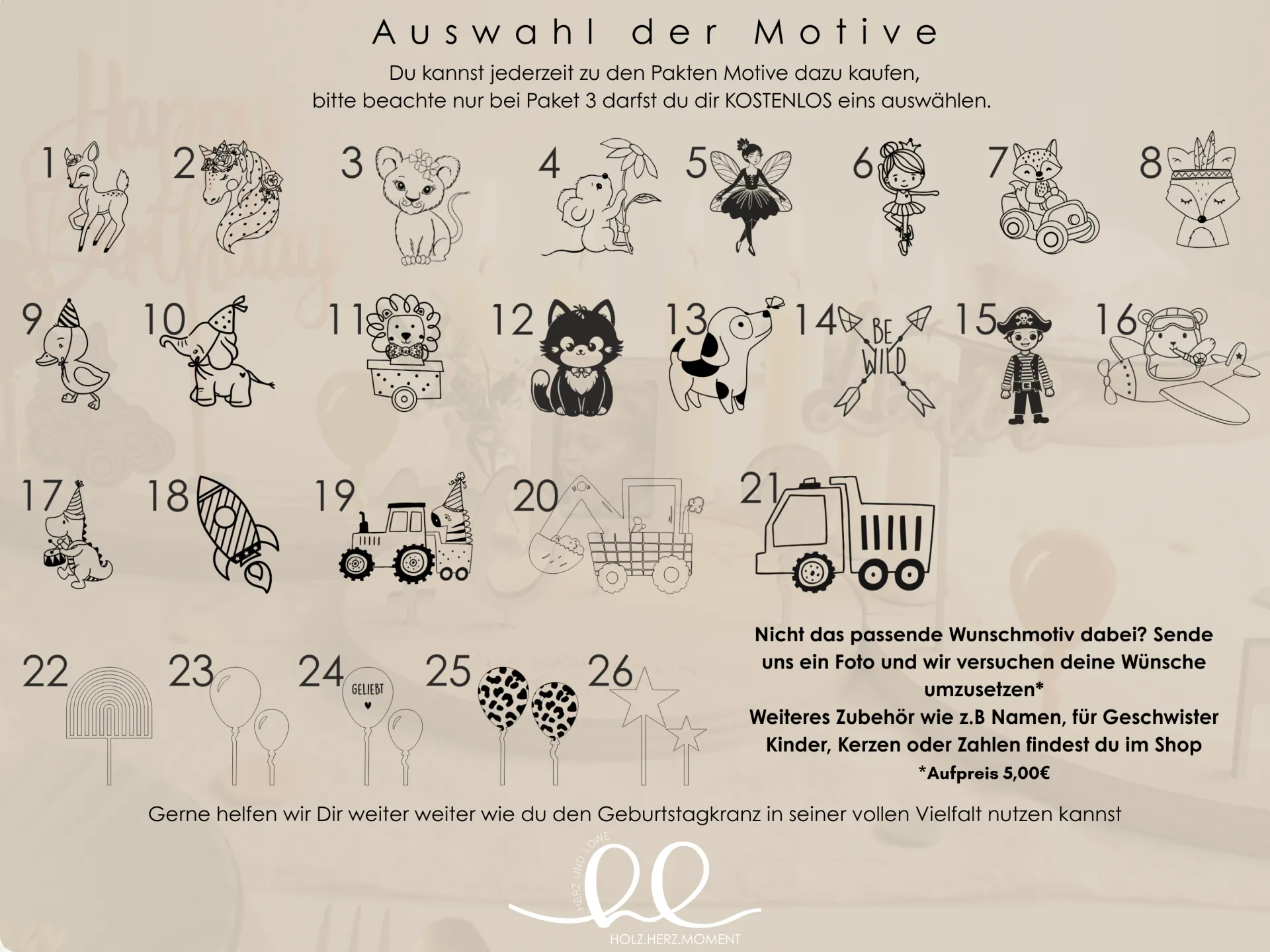 • weitere Motivstecker & Motto-Sets (z.B. Baustelle, Fußball oder Ballerina)