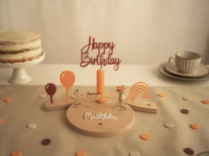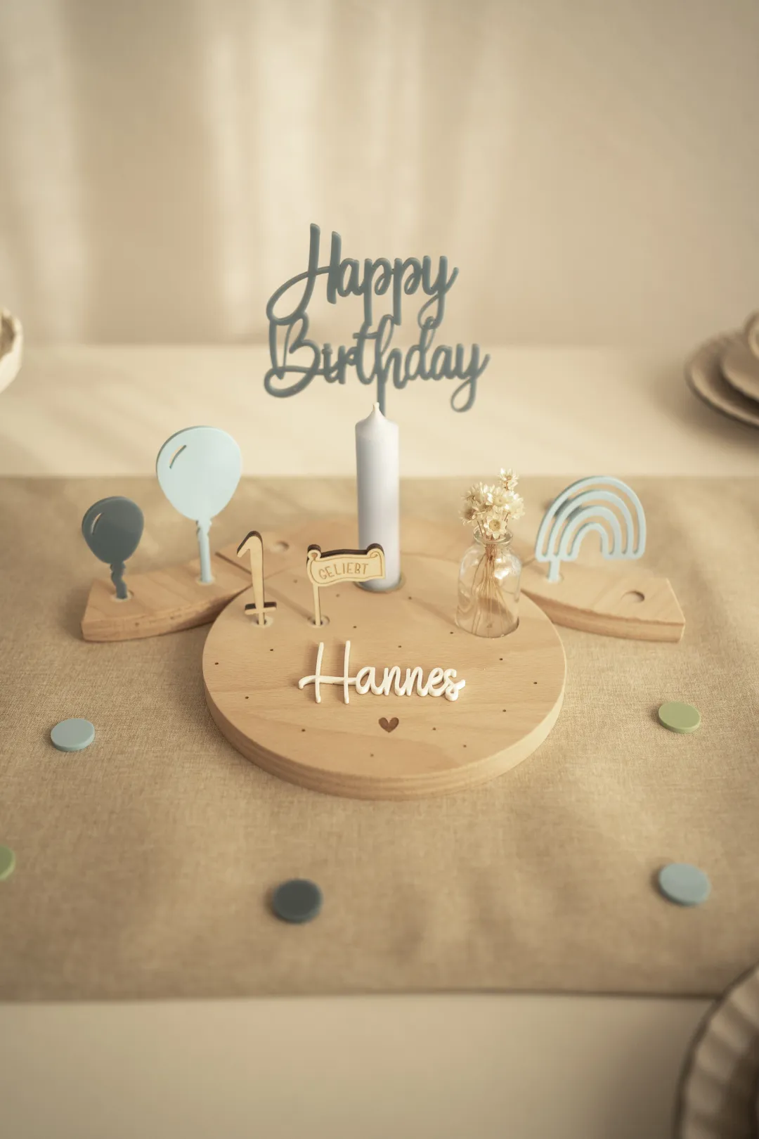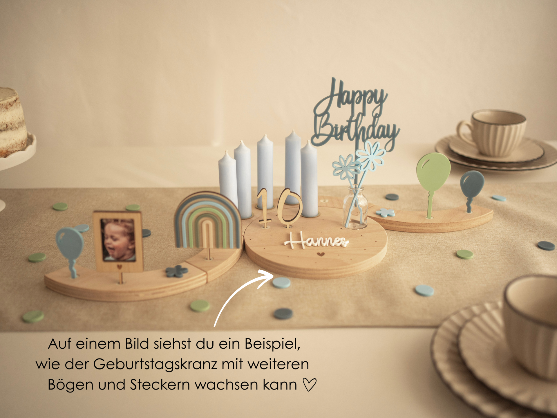 Mit unserem personalisierten Geburtstagskranz aus Holz schaffst du eine bleibende Erinnerung, die Jahr für Jahr aufs Neue Familienmomente zum Leuchten bringt. Ob zum 1. Geburtstag, zur Taufe, zur Einschulung oder als liebevoller Begleiter durch die Kindheit – dieser Kranz wächst mit deinem Kind und euren Erinnerungen