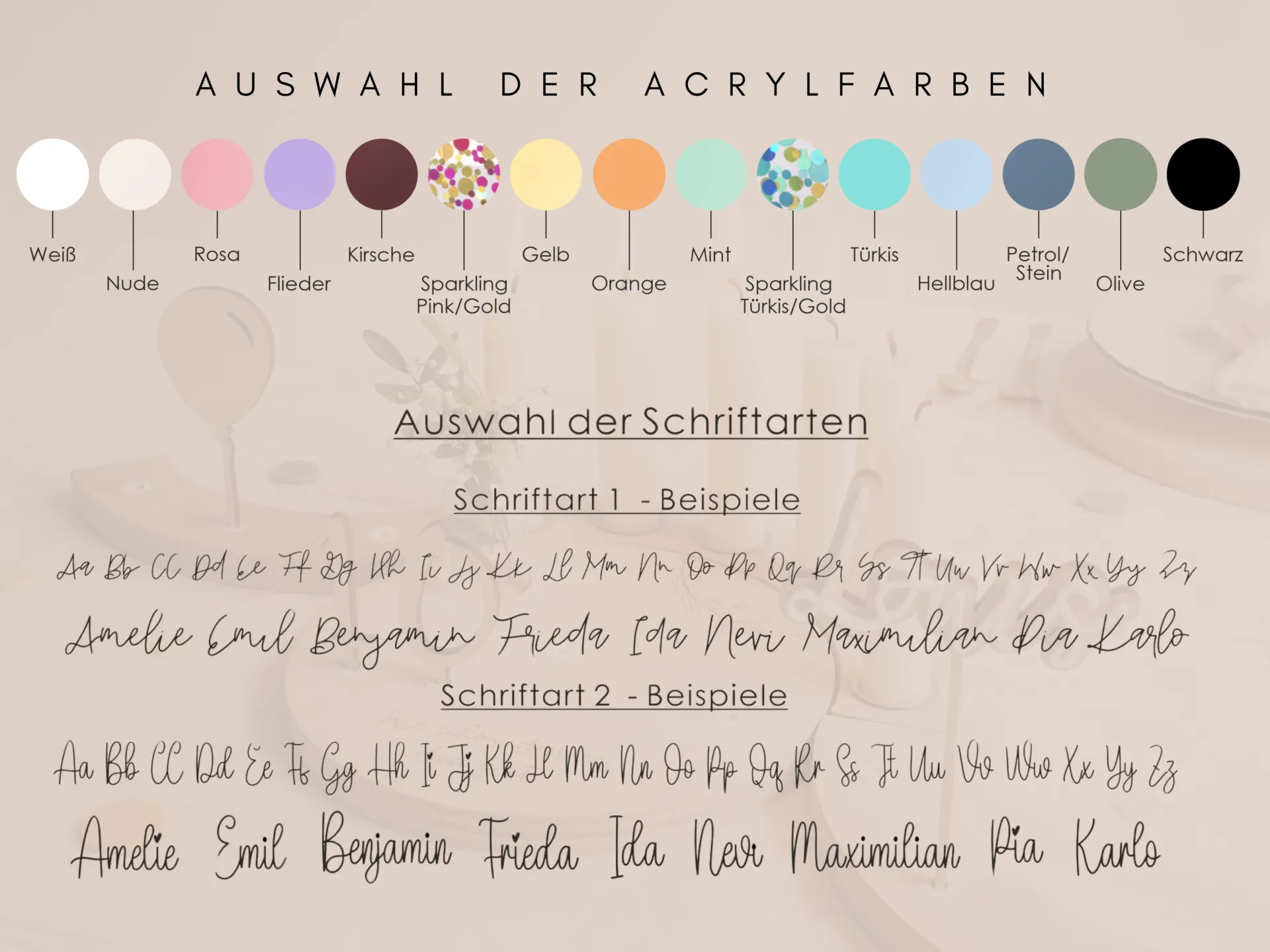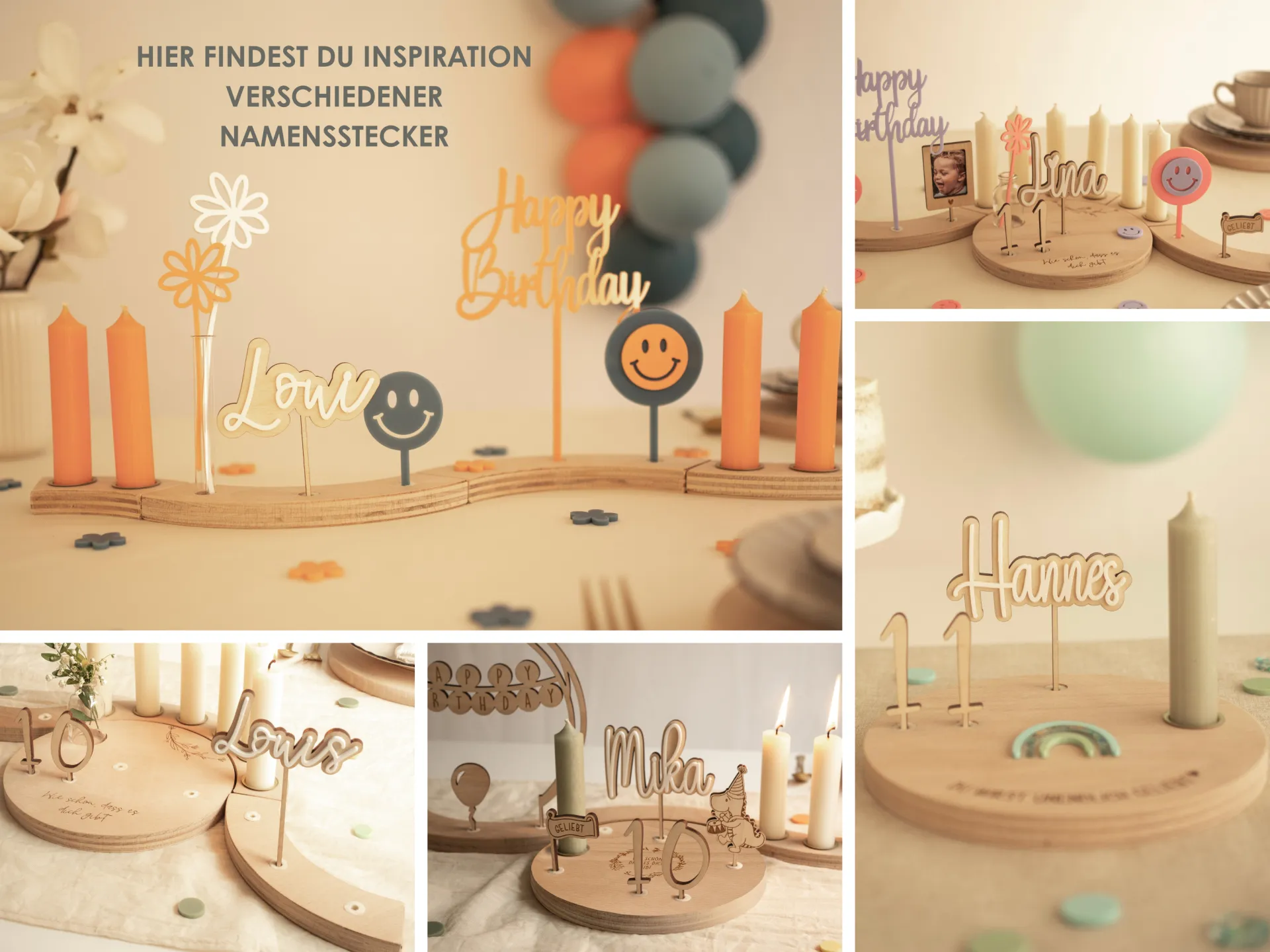 Unser personalisierter Namensstecker lässt sich wunderbar mit weiterem Zubehör aus unserem Shop kombinieren – wie Motivsteckern, Acrylballons, Holzbögen oder Zahlen. So kannst du deinen Kranz immer wieder neu gestalten und individuell anpassen. Für Inspiration lohnt sich ein Blick in unsere Fotos – dort findest du viele liebevolle Ideen rund um deinen ganz persönlichen Geburtstagskranz