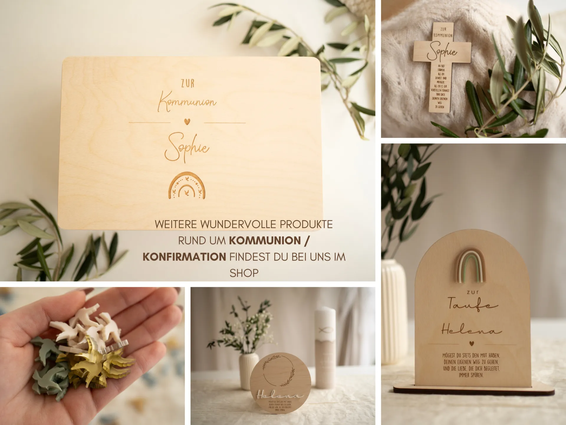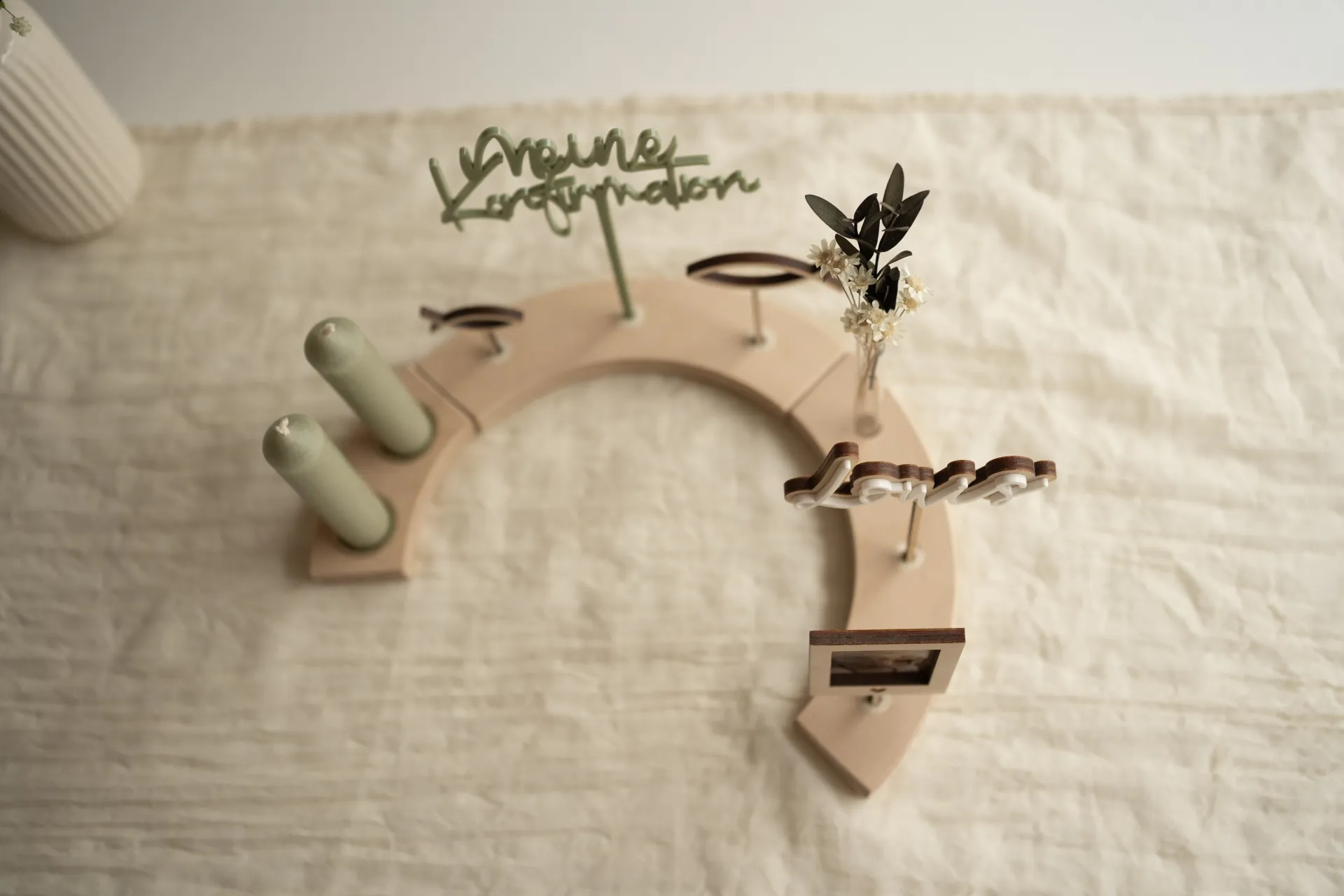 Diese Dekoration ist nicht nur ein Hingucker zur Konfirmation, sondern auch vielseitig wiederverwendbar. Ob Geburtstage, Ostern oder sogar die Adventszeit – die Holzbögen lassen sich für zahlreiche Anlässe umgestalten. So brauchst du keine Einweg-Deko mehr und tust gleichzeitig der Umwelt etwas Gutes. Das Zubehör für weitere Anlässe findest du ebenfalls in unserem Shop, schau dich gerne um!
