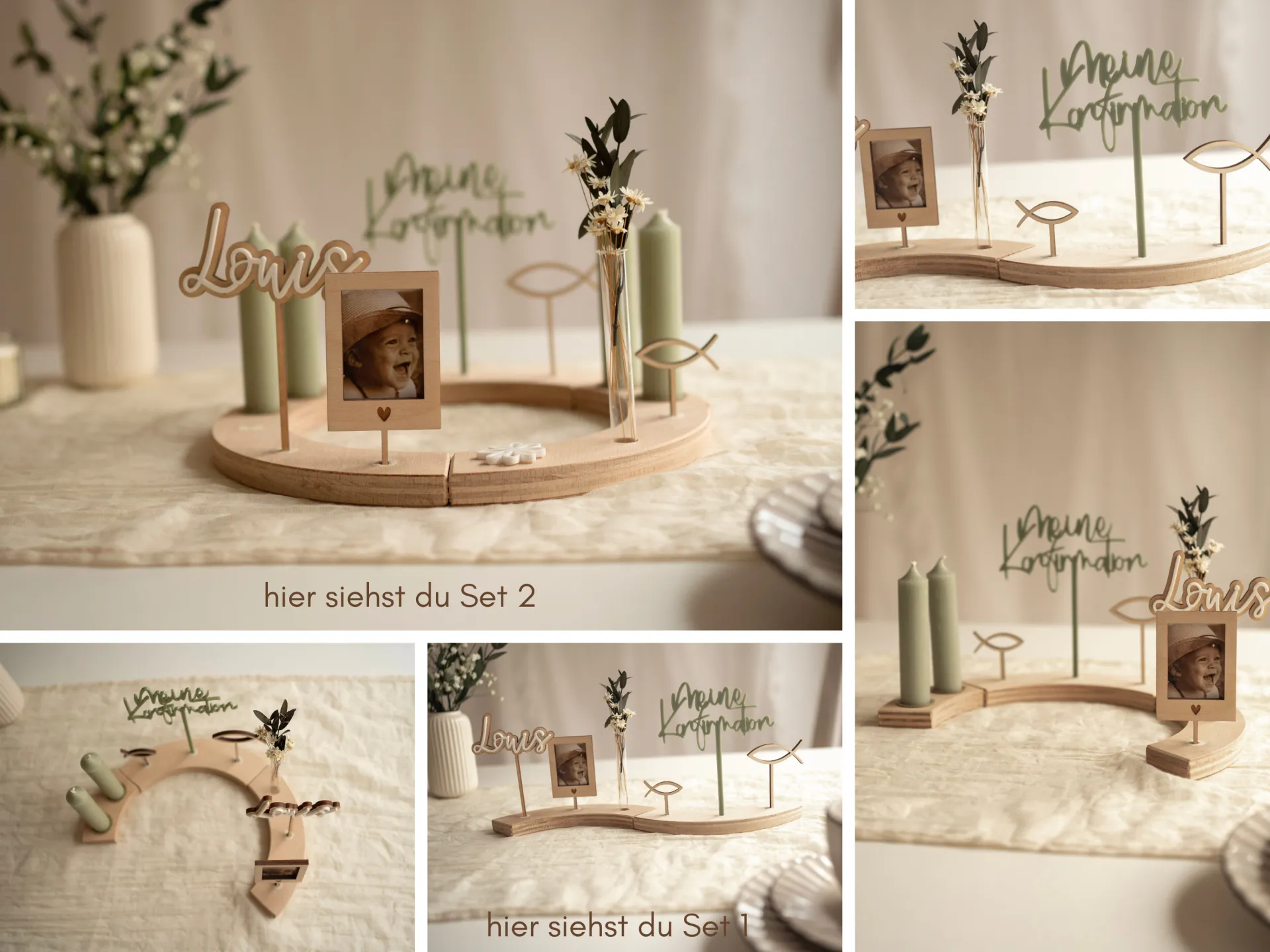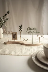 Mit ihrer Kombination aus natürlichen Materialien, farbenfrohen Details und der persönlichen Note schafft diese Tischdekoration zur Konfirmation einen Rahmen, der die Bedeutung dieses Tages unterstreicht. Die Bögen und Stecker sind leicht zu arrangieren, sodass du deiner Kreativität freien Lauf lassen kannst. Deine Gäste werden die liebevollen Details bewundern, während die hochwertigen Materialien dafür sorgen, dass die Dekoration über Jahre hinweg verwendet werden kann.